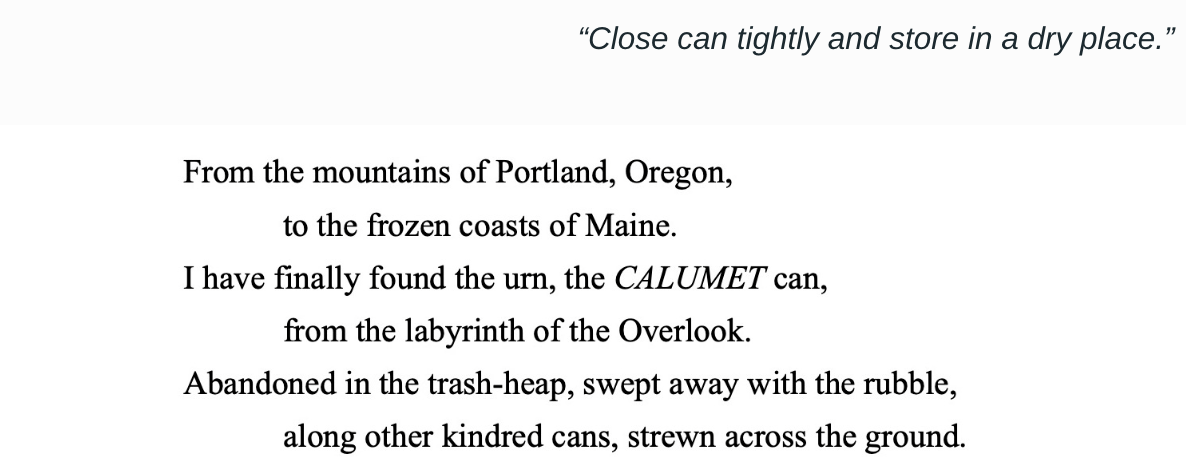 At night, that night, in the Big Boy Graveyard, rabbits played cards underneath the holographic moon. There was a squirrel, too, that scampered. And a fox. And an owl. And all the Big Boy statues that lay in that field smiled unceasingly, a hollow purgatory, a big jumbled picnic table fable of a mountain. Me and you, when we drove down there on Halloween, we didn’t know what we were getting ourselves into. The hickory smoke sound of your playlist.