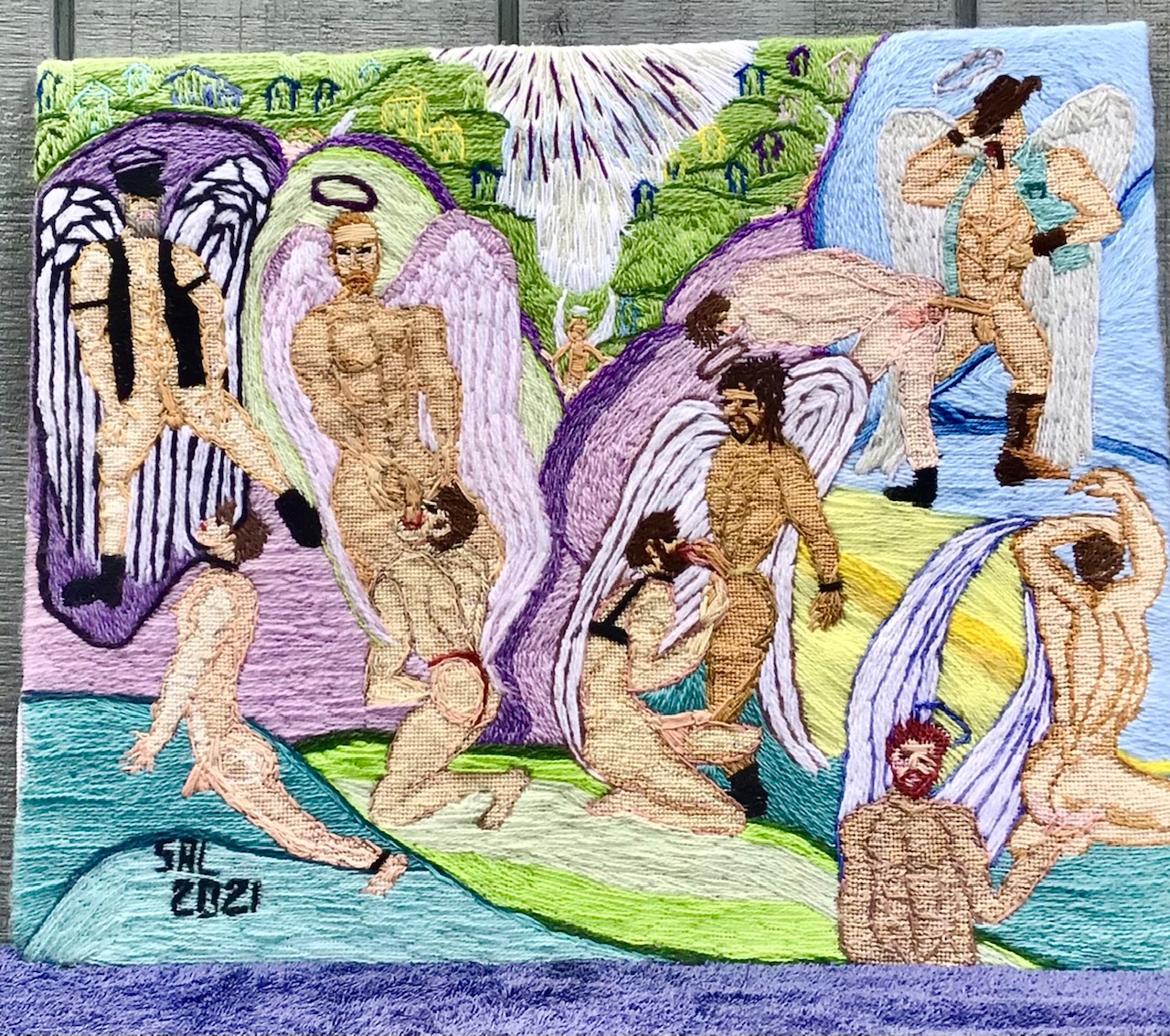 I am American self taught artist .My art is self created and hand sown .I have been sowing 40 yrs erotic the past 10 I sow 12 hrs a day every day.