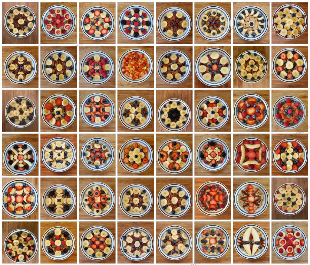 The photographic series “Breakfast Mandalas” (2020) is the documentation of a performance — a daily, quarantine-era ritual, created and then consumed.
