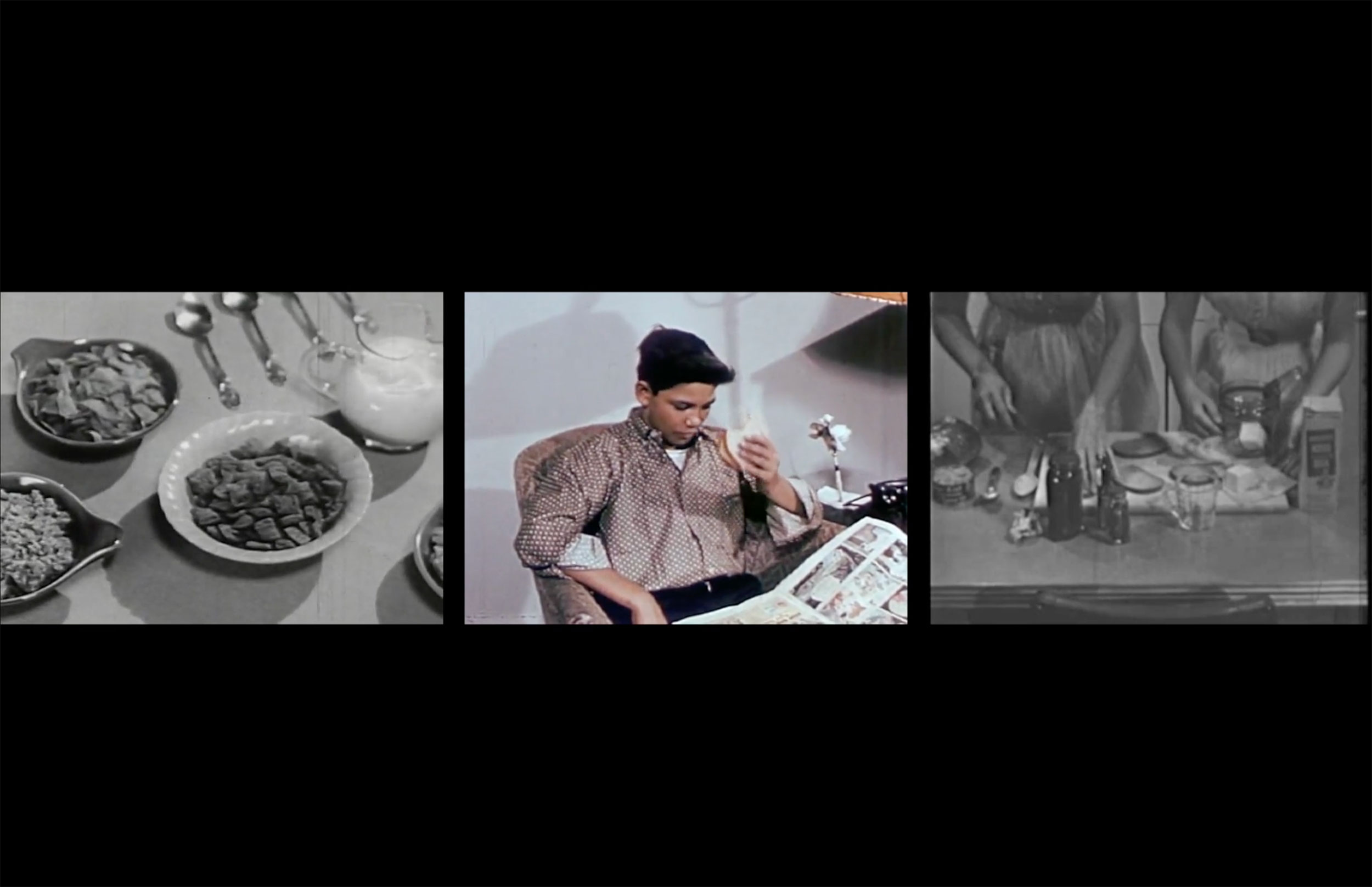 8-Course Meal is an experimentation in media consumption via rules and rhythms. A chaotic assortment of media hides a narrative structured via a heavy set of guidelines. The composition takes three separate panels: The first shows food presentation, predominantly within commercial setting. The second shows food consumption via both educational and commercial media. The third shows food preparation via predominantly educational films. Together the three frames form a narrative of food horror and guided consumption toward an end perhaps not as altruistically educational as media would present. Meant to mirror the rules and rhythms of our consumption flow throughout a coursed meal, or our day, or the course of our lifetime, 8-Course Meal is an experiment in consumption of media on consumption, structured. https://vimeo.com/666139692