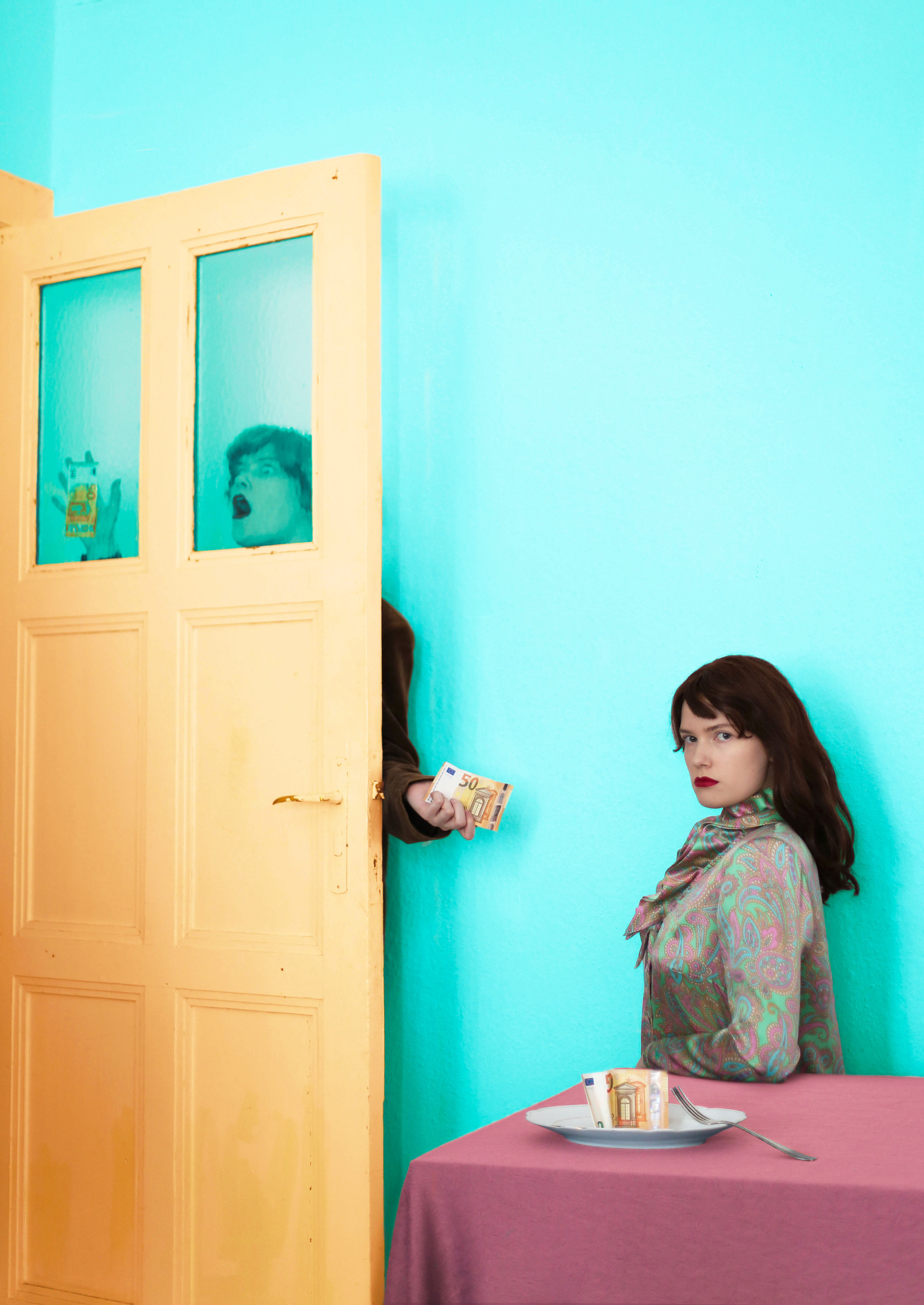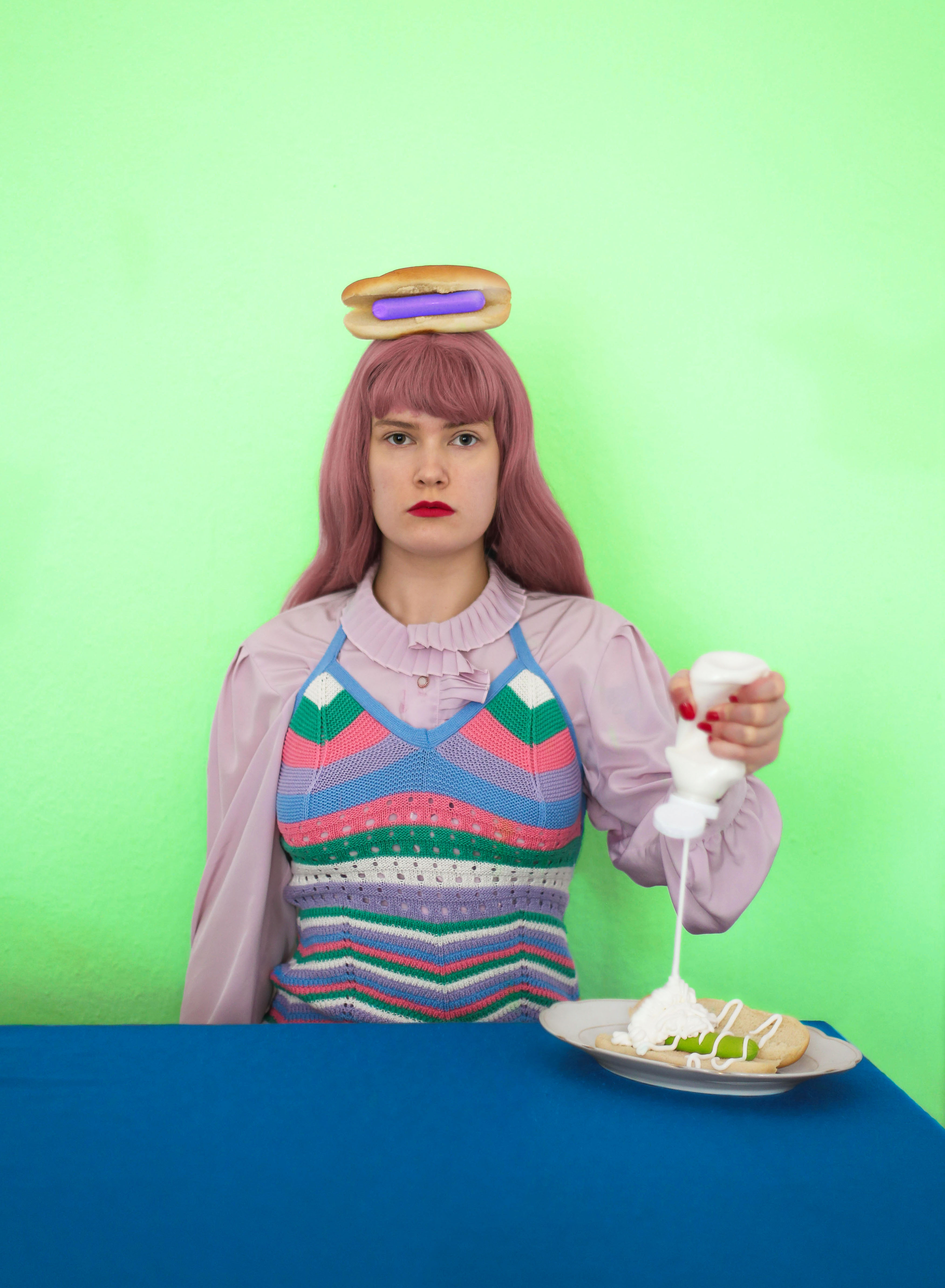I feel the freest version of myself when I am alone in a room with a camera. Creating self-portraits makes me feel liberated and it helps me to understand my identity and surroundings. It is a way to seek, play, and have fun and as well it is a way for me to hide, isolate and be alone with my thoughts and feelings. When I’m creating my artwork, the camera is an ally who doesn’t judge. It gives me space to get to know myself through art and experiment with my body, mind, and emotions. In my work, I use bright colors to visualize experiences that are difficult to communicate verbally. To clear the mixed thread between strong and mellow, to create clarity to chaos. I mix quirky details with pastel shades, to create an atmosphere where comedy and panic are welcome to meet each other and tell an untold story that gives the viewer many possible endings. My portraits are stories from inside the household, where daily life turns strange and the person we are is in the main spotlight as the one we should learn to love and take care of.