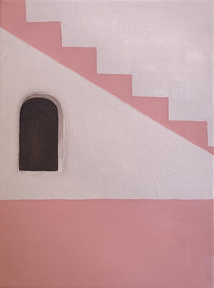 My paintings are a visual exploration of the push-pull relationship between my fast-paced urban environment and the remote, open landscapes I long for. I aim for simplicity in my painting, abstract landscapes reduced to uncomplicated shapes. There is natural minimalism to the Southwest that cannot be replicated with the manufactured minimalism of urban design, but through my art, I attempt to understand the way the two interact with one another in relation to space and time.